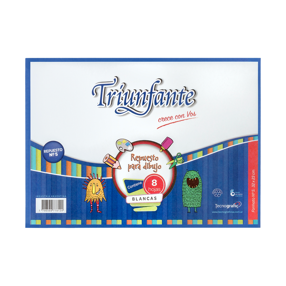 Repuesto Dibujo Triunfante N°5 Apaisado 8 Hjs Blancas