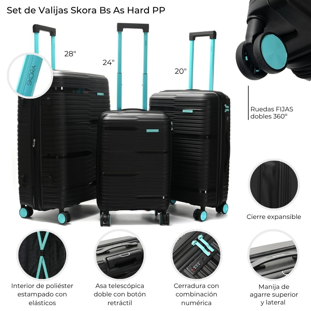 Set De Valijas Skora Rigida Pp Negro 20"-24"-28"