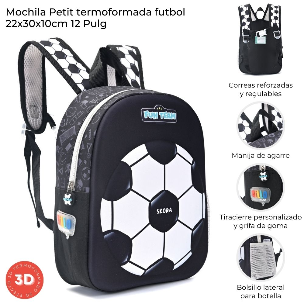 Mochila Skora Petit Termoformada Futbol 22X30X10Cm 12"