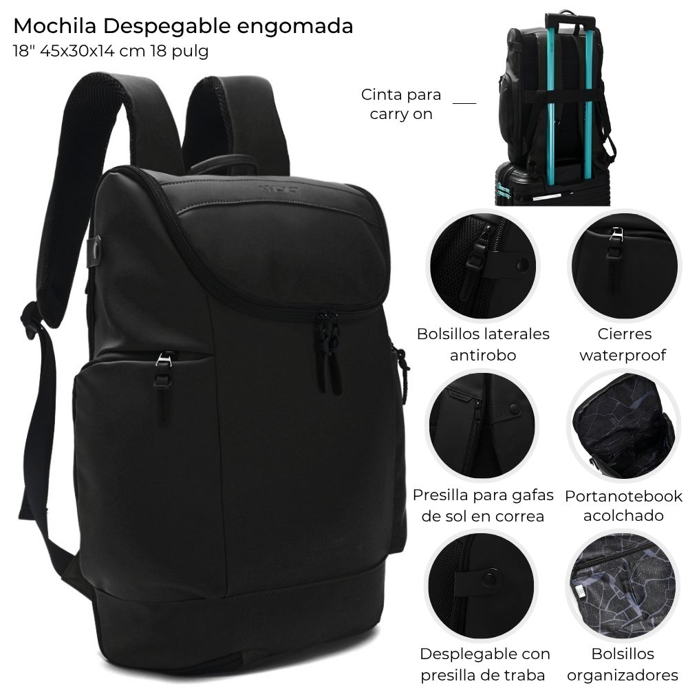 Mochila Wdlt Despegable Engomada 18" 45X30X14 Negro