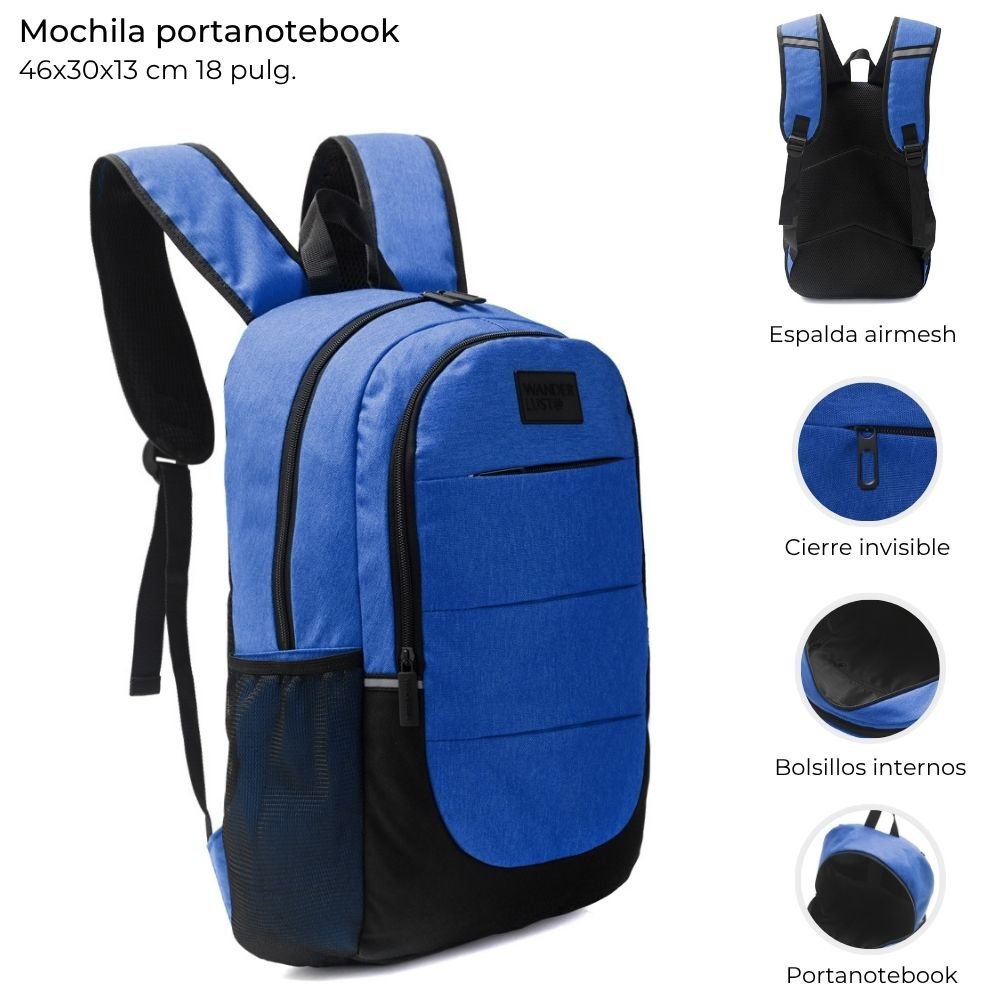 Mochila Wdlt Portanotebook 46X30X13 Cm 18" Azul Francia
