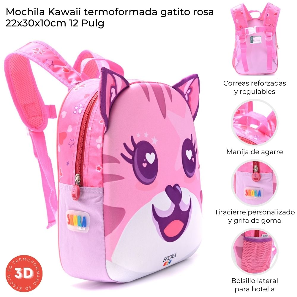 Mochila Skora Kawaii Termoformada Gatito Rosa 22X30X10Cm 12"