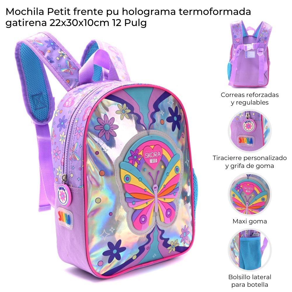 Mochila Skora Petit Termoformada Mariposa 22X30X10Cm 12"