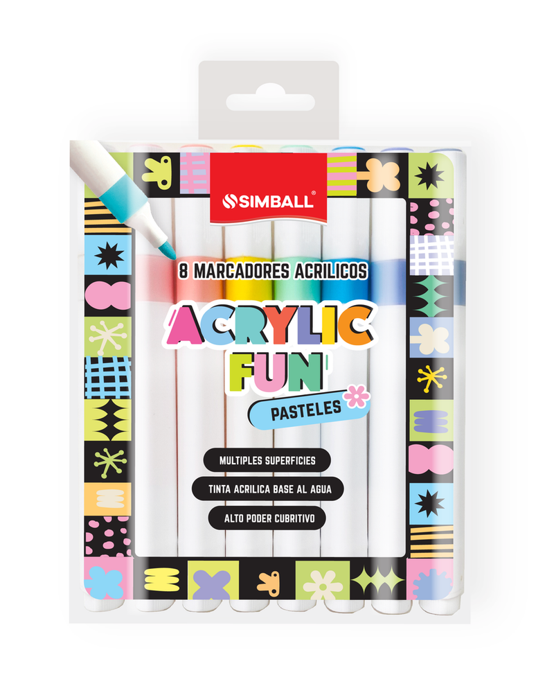 Marcadores acrílicos con tinta base al agua. Punta redonda de 2 mm.